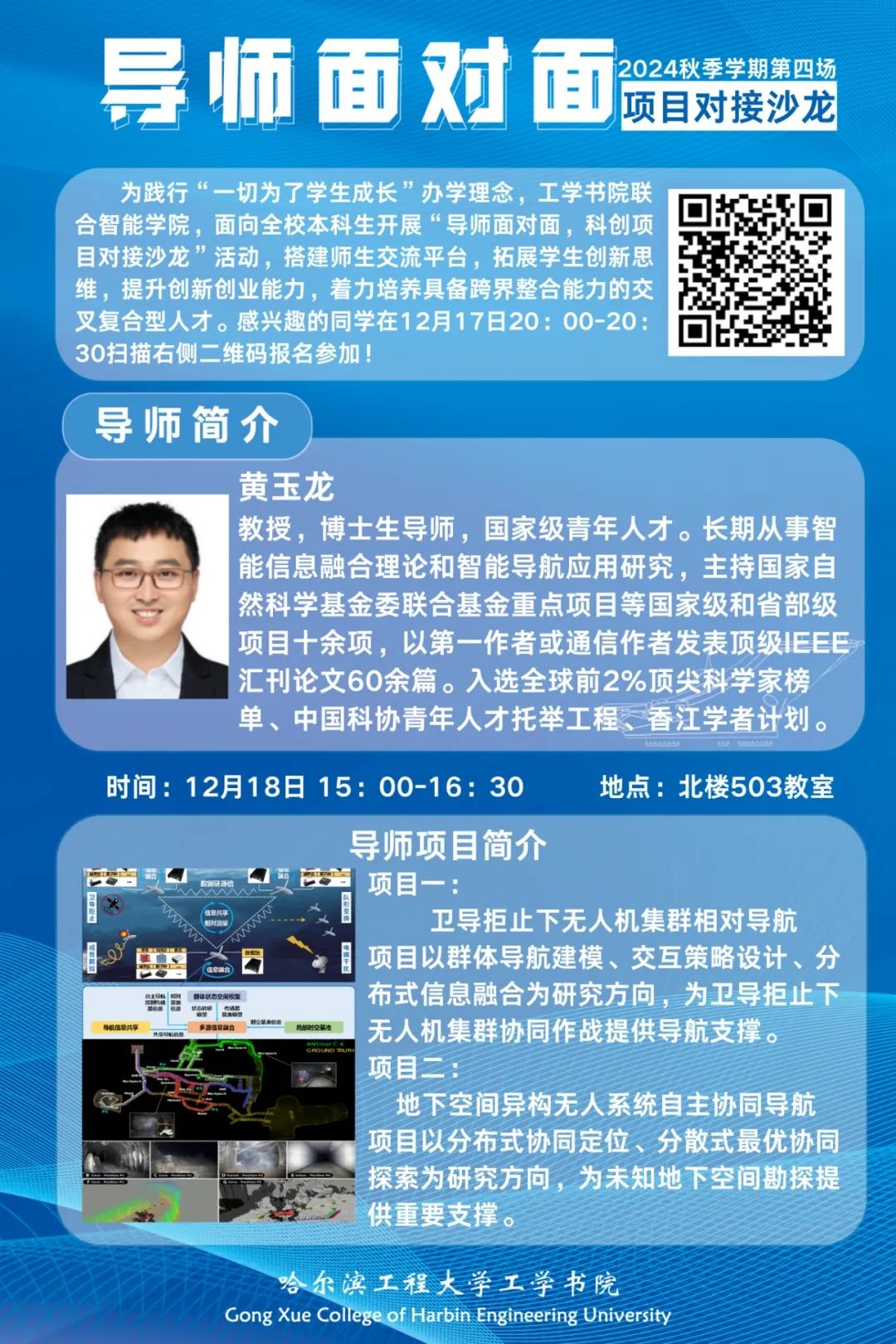 黄玉龙,教授,博士生导师,国家级青年人才。长期从事智能信息融合理论和智能导航应用研究,主持国家自然科学基金委联合基金重点项目、科技部重点研发专项课题、JKW项目、教育部前沿中心重点项目等国家级和省部级项目十余项,以第一作者或通信作者发表顶级IEEE汇刊论文60余篇。入选全球前2%顶尖科学家榜单、中国科协青年人才托举工程、香江学者计划、黑龙江省向上向善好青年,获得黑龙江省自然科学奖一等奖、中国自动化学会自然科学奖一等奖、吴文俊人工智能优秀青年奖、IEEE Barry Carlton奖、IEEE BarryCarlton奖荣誉提名、中国自动化学会优秀博士学位论文奖。目前担任《IEEE Transactions on Automatic Control》《IEEE Transactionson Automation Science and Engineering》《IEEE TransactionsAerospace and Electronic Systems》《IEEE Transactions onInstrumentation and Measurement》《IEEE Sensors Journal》等国际期刊副主编。